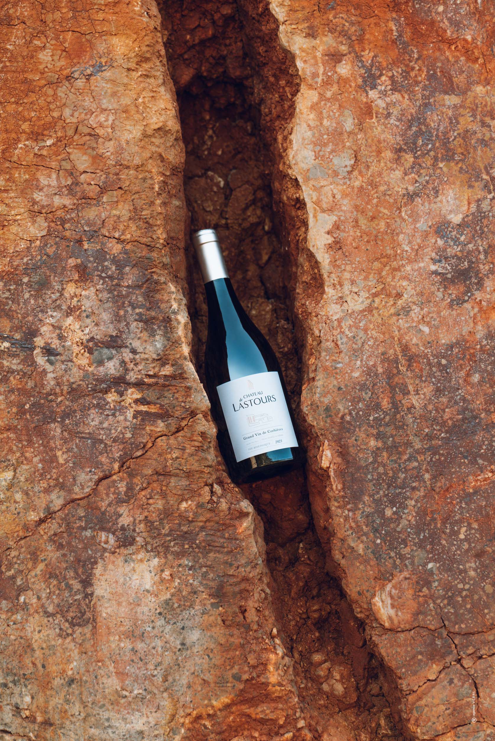 Vendanges à la main au Château de Lastours – récolte d’une grappe de raisin noir en Corbières